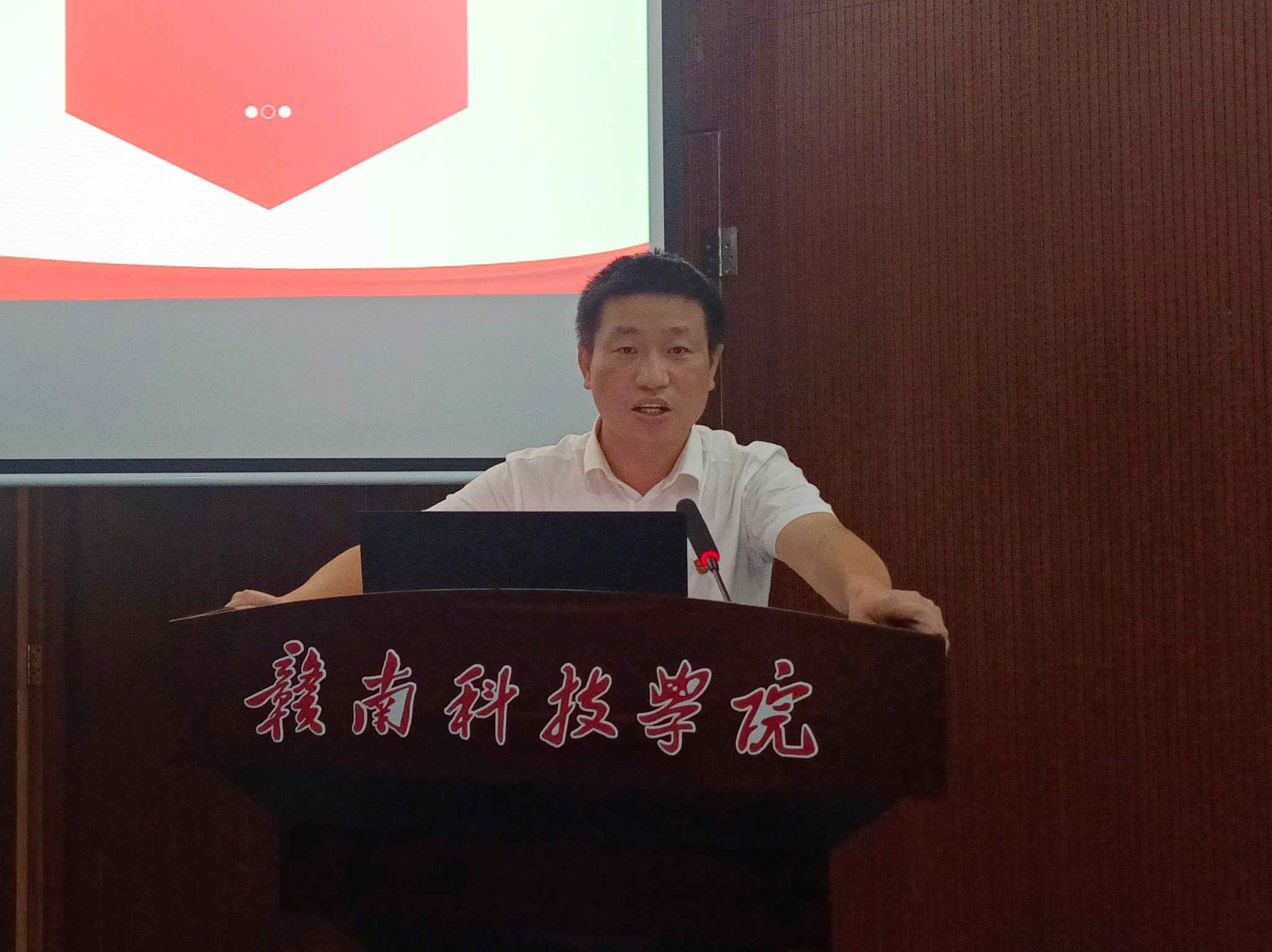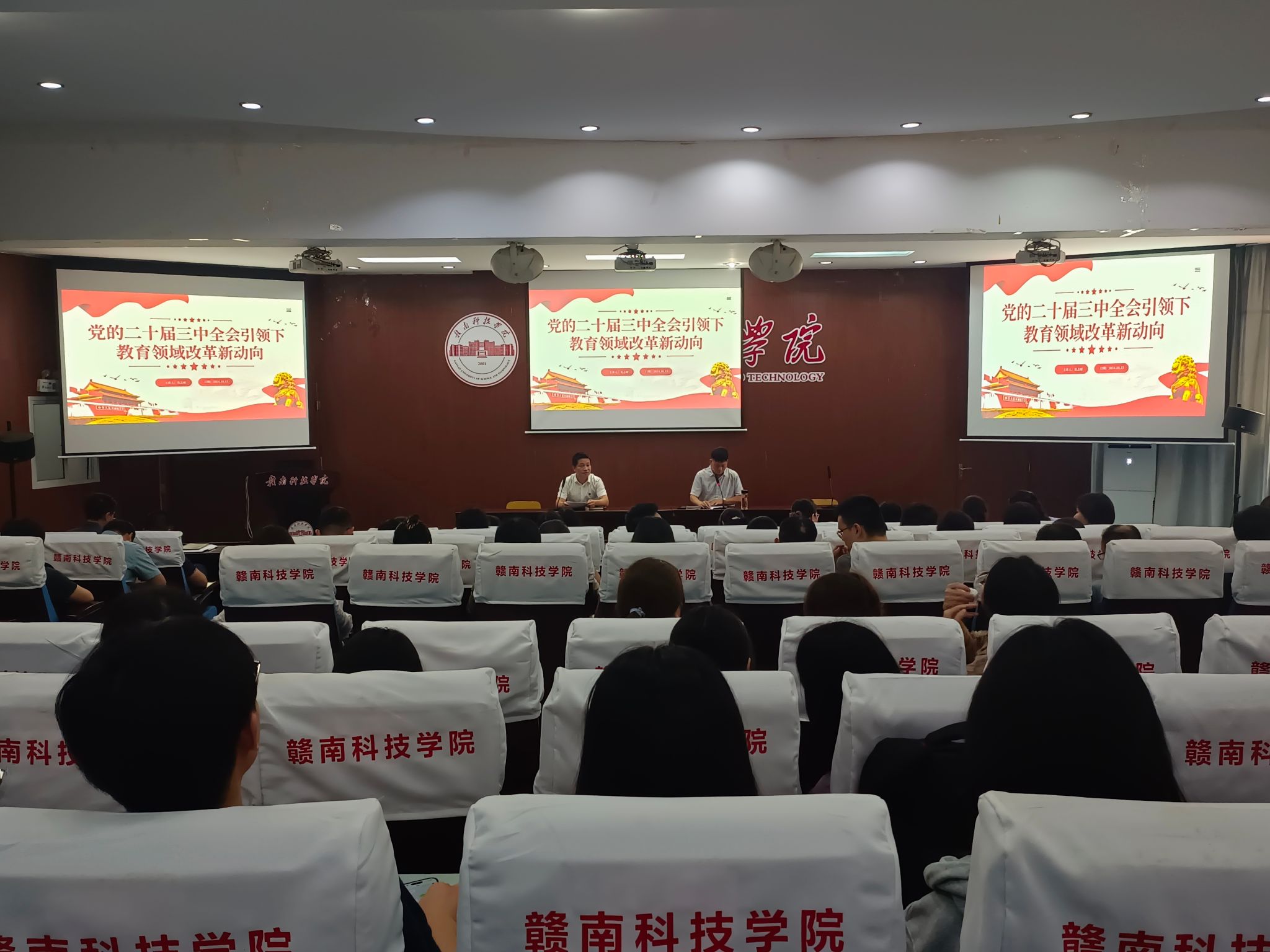 本网讯:10月15日下午,为进一步发挥先进典型的示范引领作用,学院党委邀请2024年江西省“新时代赣鄱先锋”葛志财老师在新民楼报告厅作题为《党的二十届三中全会引领下教育领域改革新动向》的专题报告,也作为学院党委“初心讲堂”的第二讲。学院党委书记肖永鸿、副院长钟滨、领导班子成员、全体教职工及学生第一、第二党支部全体同学参加。报告会由肖永鸿主持。