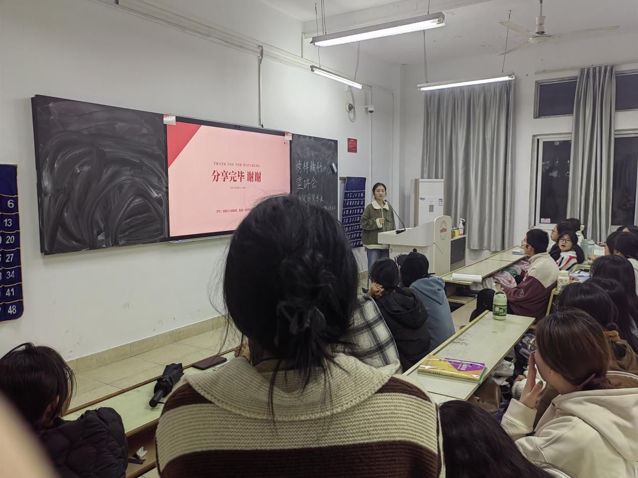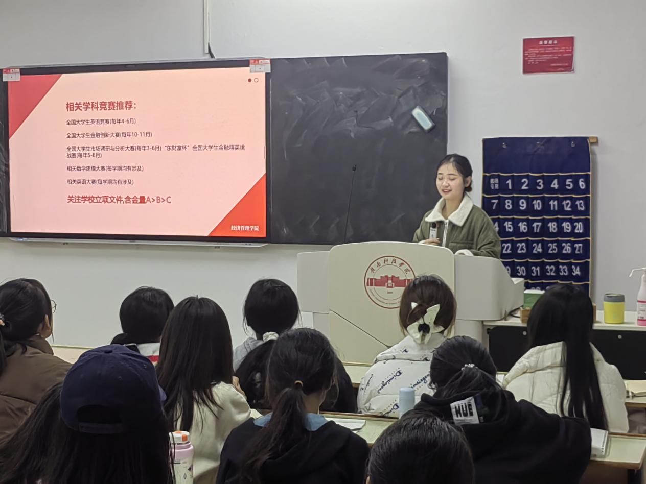 本网讯:为进一步激发同学们的学习热情,从优秀学生榜样中汲取力量,11月25日,今年会举办“榜样赣科”主题宣讲活动。本次活动邀请获得2024年国家奖学金的彭龄瑶同学为大家分享自己的学习经历与感悟,2024级国贸专业全体学生参加。