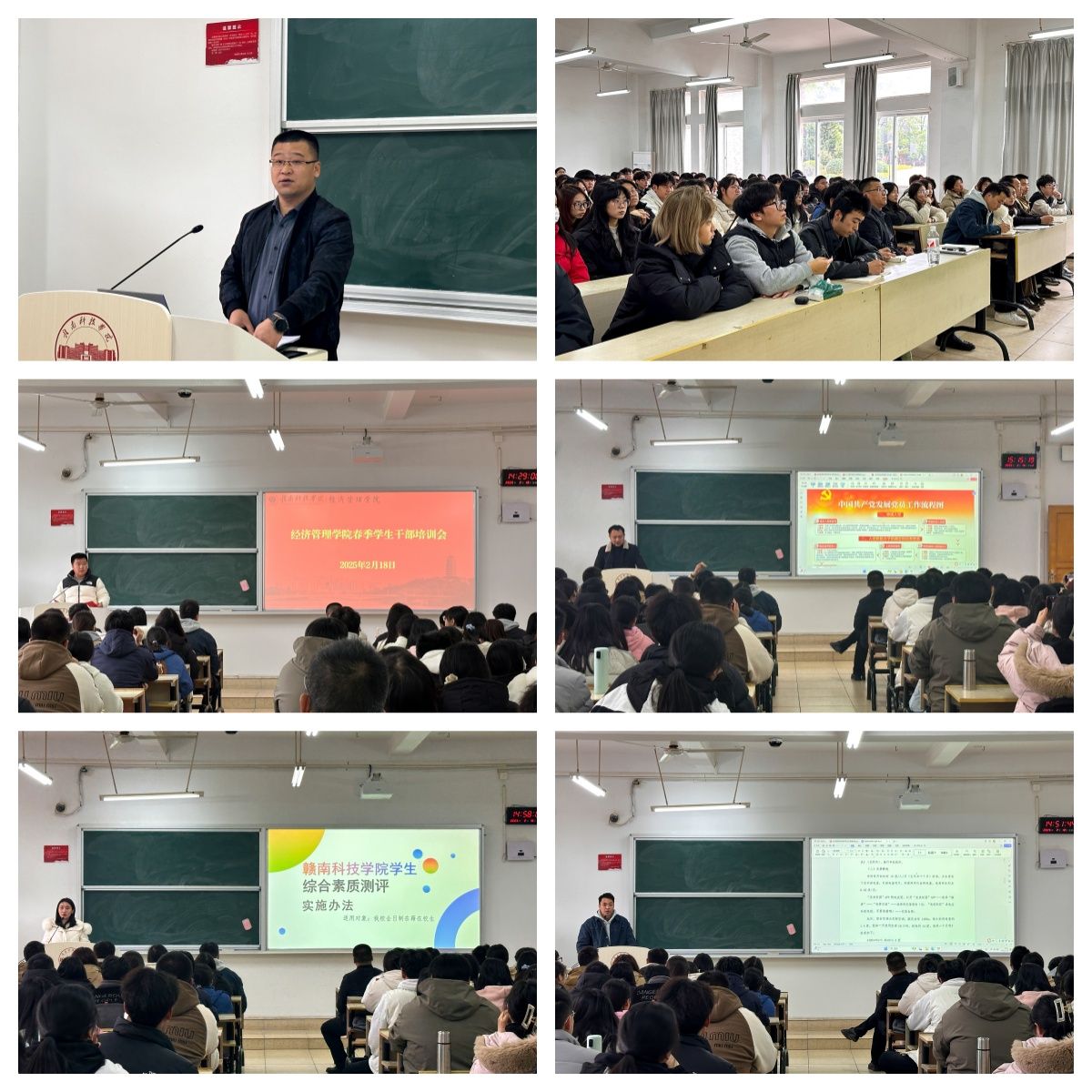 会议伊始,辅导员邹雄刚以“入团推优工作”为主题,深入剖析了推优工作的评议流程,强调学生干部在推优工作中的示范引领作用,助力学生思想政治素质提升,为本科教学合格评估工作奠定思想基础;辅导员郭惠珍围绕“中国共产党发展党员工作”进行了详细讲解,从申请入党、入党积极分子的确定和培养教育等方面入手,强调学生干部在党建工作中的桥梁纽带作用,为评估工作提供组织保障;辅导员温良聚焦于学生宿舍生活方面,提升学生安全用电意识,强化学校宿舍管理,强调学生干部在宿舍文化建设中的模范带头作用,为评估工作营造良好的生活环境;辅导员张煜就综合素质测评实施办法进行讲解,明确了测评对象、内容、方式以及组织流程等内容,强调学生干部在学风建设中的表率作用,为评估工作建立优良学风。