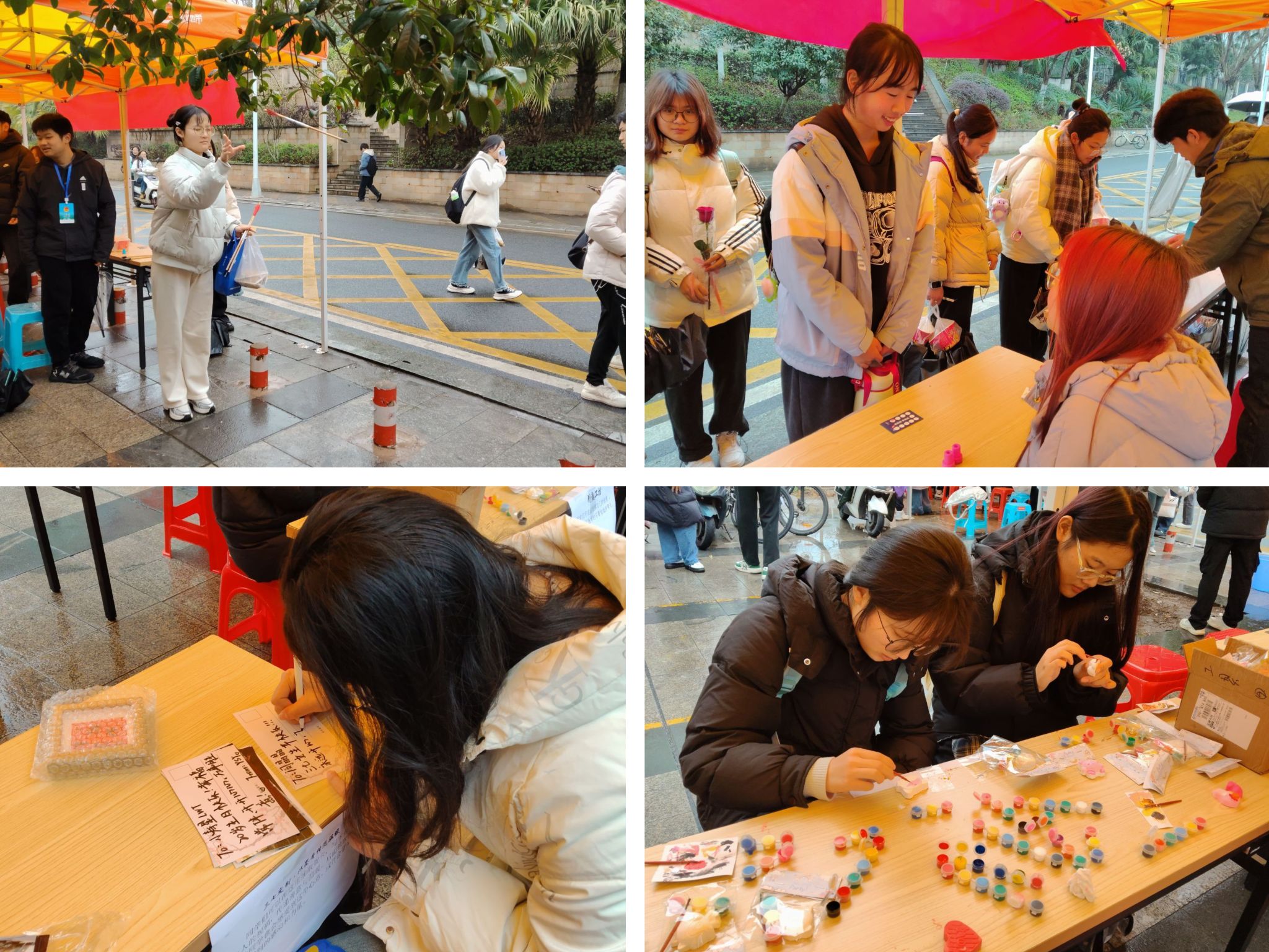 活动现场热闹,女生们争相参与趣味游戏。“Emoji猜成语”萌趣考题,女生们沉思后灵光一闪,破解谜题击掌庆,欢声笑语不断;投壶挑战赛,参与者屏息,箭矢直奔壶口,围观者指挥角度,中靶掌声雷动,传统雅趣焕活力;“九九乘法表大作战”规则随机,乘法变挑战,有人脱口而出,有人手忙脚乱,现场成“最强大脑”舞台;创意工坊内,女生们挥洒丙烯颜料,石膏娃娃变艺术品。