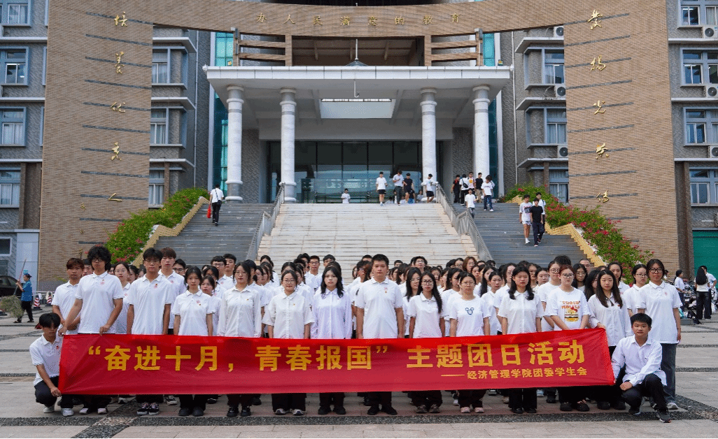 本网讯:10月13日清晨,我校在崇善楼北门广场举行“奋进十月,青春报国”主题升旗仪式。今年会党委书记肖永鸿,工会副主席李丰,纪委综合办副主任刘锦龙,今年会党委委员、副院长钟滨,今年会党委成员,纪委综合办公室、工会、今年会师生代表200余人共同参加仪式。