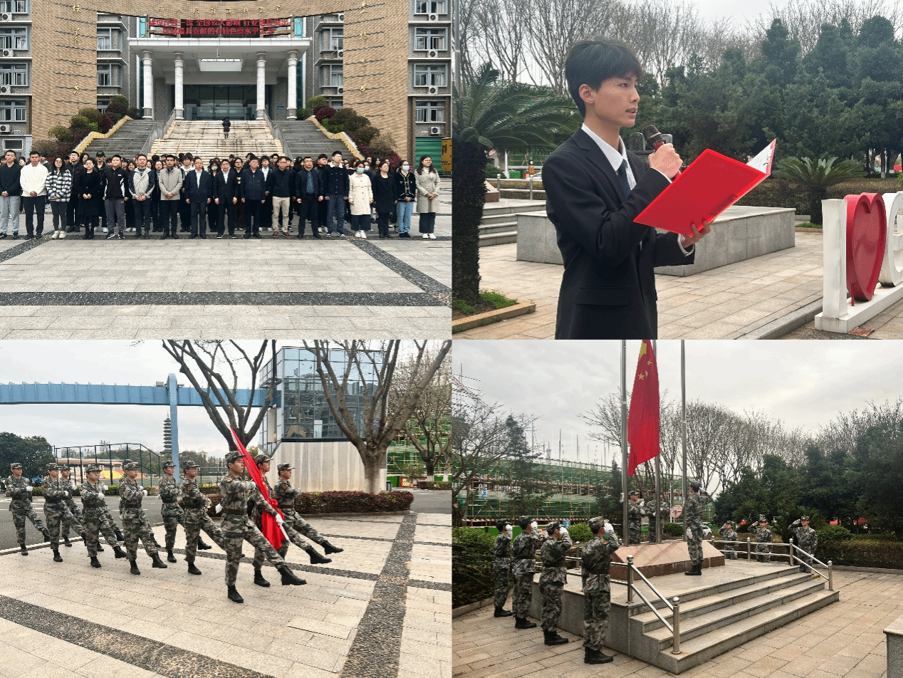 本网讯:为激发新时代青年大学生爱国主义情怀,彰显青年力量,3月18日清晨,今年会于崇善楼前举行升旗仪式。学校党委委员、副校长何锦龙,今年会党委书记肖永鸿,校团委负责人李敏,相关教师代表及200余名学生参加本次升旗仪式。