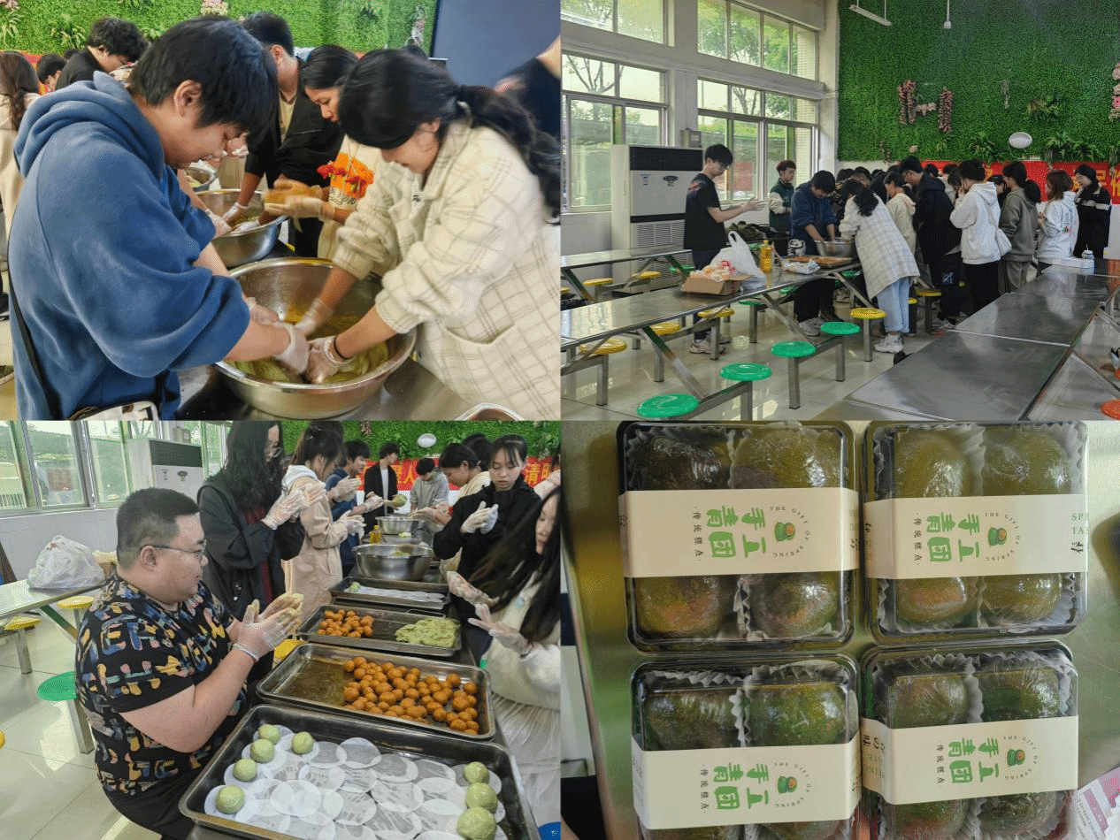 在青团制作环节中,学生们齐心协力,在经验丰富的食堂阿姨们细心指导下,共同揉面、搓圆、包馅,动手制作青团。在制作过程中,同学们既体会到了劳动的乐趣,又感受到了传统文化的独特魅力。经过十几分钟蒸制,一屉屉油绿如玉、糯韧绵软、清香扑鼻的青团顺利出锅。在场人员共同品尝美味青团,热乎乎的青团飘香四溢,清新的香味布满了整个食堂。