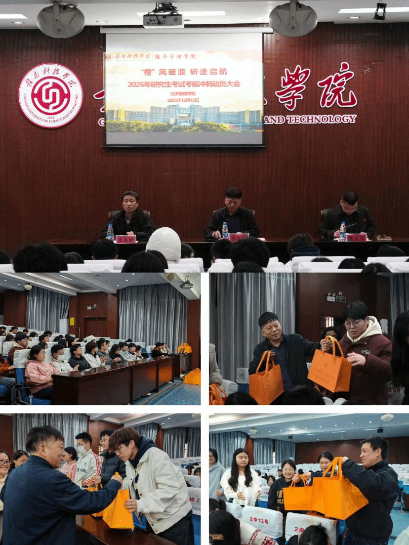 肖永鸿在总结讲话中,向全体考研学子提出五点殷切期望:一是胸怀“国之大者”,将个人理想融入时代发展;二是坚定战略自信,珍惜积累、从容查漏补缺;三是用好组织优势,遇困难及时向学院求助;四是严守纪律底线,诚信应考;五是保持战斗状态,科学规划冲刺、调整好身心状态。肖永鸿强调,学院将秉持“一切为了考研,一切服务考研”的理念,全力提供支持,让学子们心无旁骛奔赴考场。大会现场还举行了温馨的“考研加油包”赠送仪式。领导老师们亲手将装满脐橙、涂卡套装、文具等物资的加油包送到学子手中,寓意着“旗开得胜、心想事‘橙’”,把学院的深切关怀与美好祝福传递给每一位备考学子,现场暖意融融。