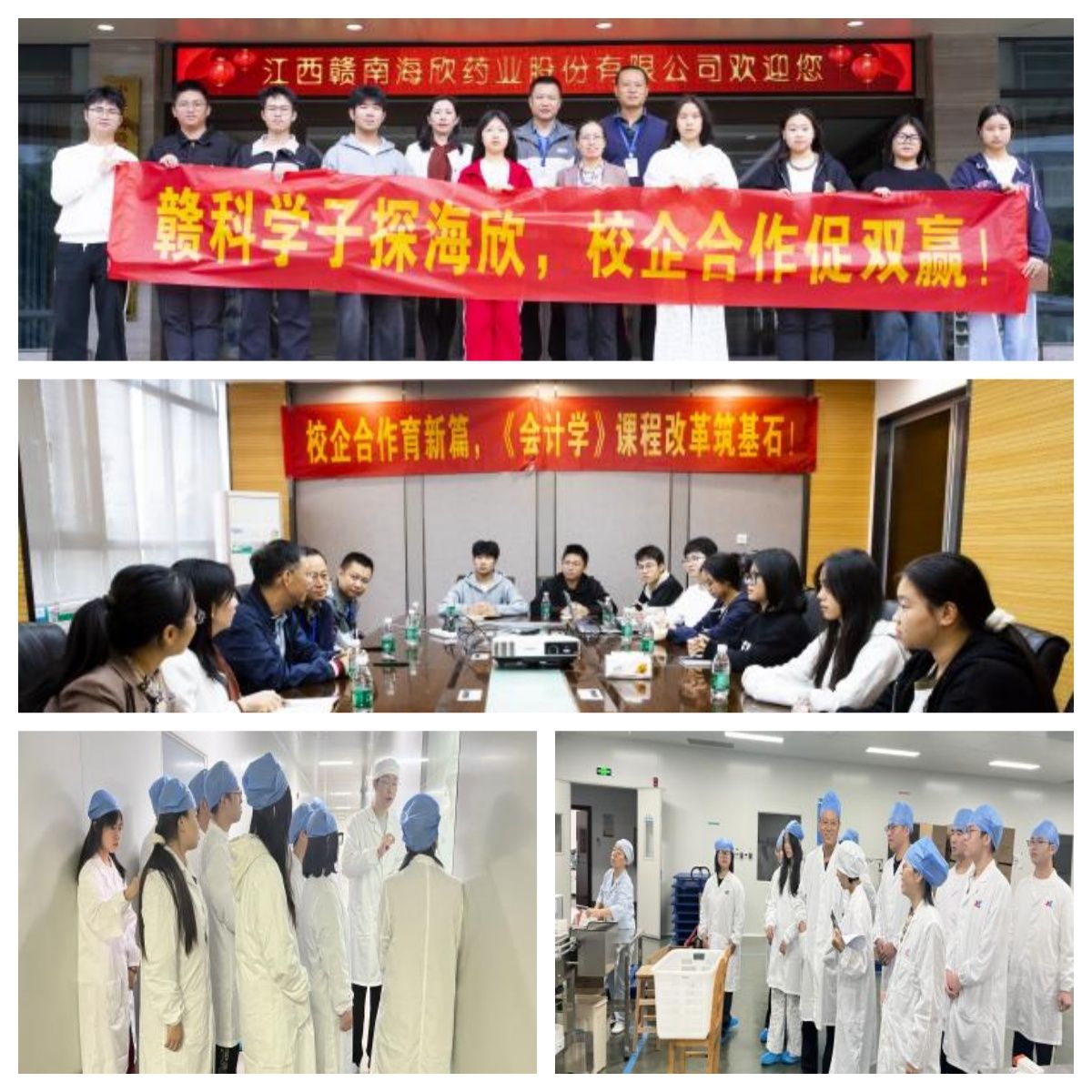 10月25日,学院杨玲、刘贻玲老师带领学院会计专业学子走进江西赣南海欣药业股份有限公司(简称:海欣药业),展开了一场别开生面的走访学习活动。此次活动得到了海欣药业的高度重视,董事长秘书兼财务总监王爱民、财务部长陈黎明、副部长赖裕琪等公司相关人员热情接待了师生一行。