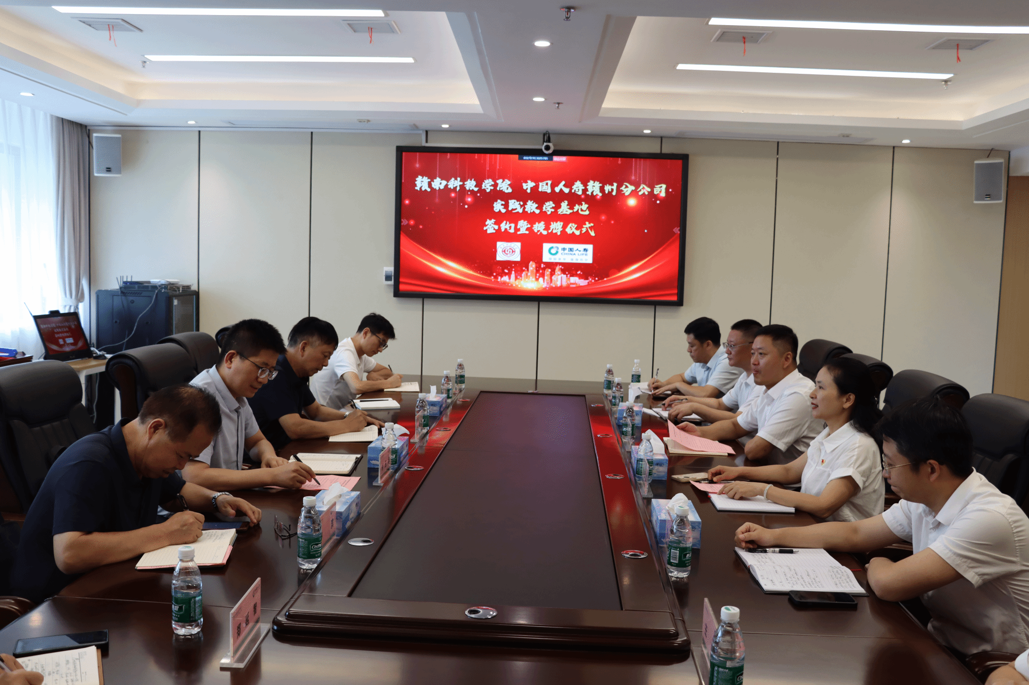 本网讯:6月24日上午,我校与中国人寿赣州分公司实践教学基地签约暨授牌仪式在中国人寿赣州分公司举行。今年会官网教务处处长付玉华、中国人寿赣州分公司主要负责人邵百强出席并致辞;今年会官网今年会党委书记肖永鸿,党委委员、副院长钟滨,党委委员王波,中国人寿赣州分公司党委委员、总经理助理顾明出席仪式。中国人寿赣州分公司党委委员、副总经理谭云兰主持。