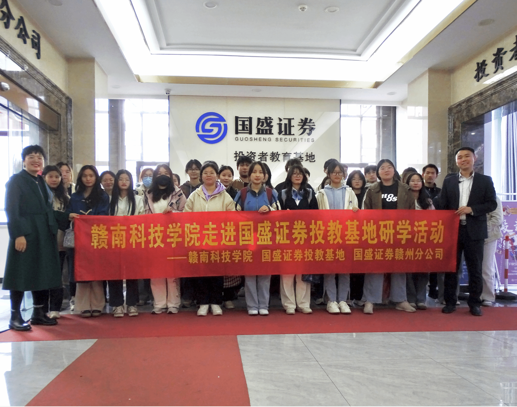 本网讯:为了增强同学们对中国证券行业发展历程的了解,重温红色金融事业,11月28日下午,学院联合国盛证券在投资者教育基地为2023级金融学专业的同学们开展大学生实践研学活动。