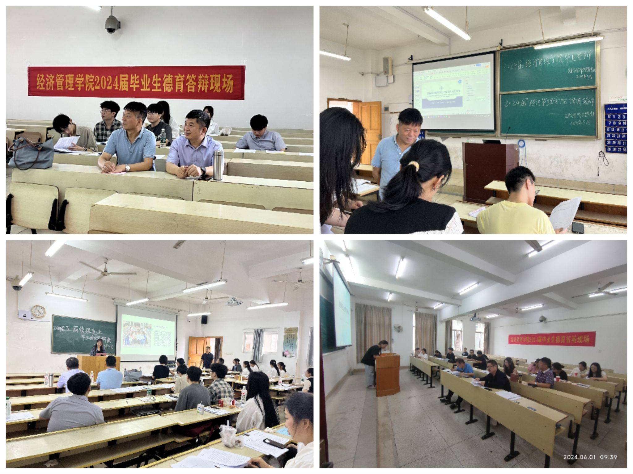 本网讯:为加强毕业论文质量管理,检验人才培养的效果,增强大学生思想政治教育,5月31日至6月2日,学院工商管理、电子商务、国际经济与贸易、金融学和会计学等专业陆续开展毕业论文和德育论文答辩工作。此次答辩活动旨在全面检验2024届毕业生在专业知识和德育养成方面的成果,并为其未来的专业发展和人生道路提供指导。