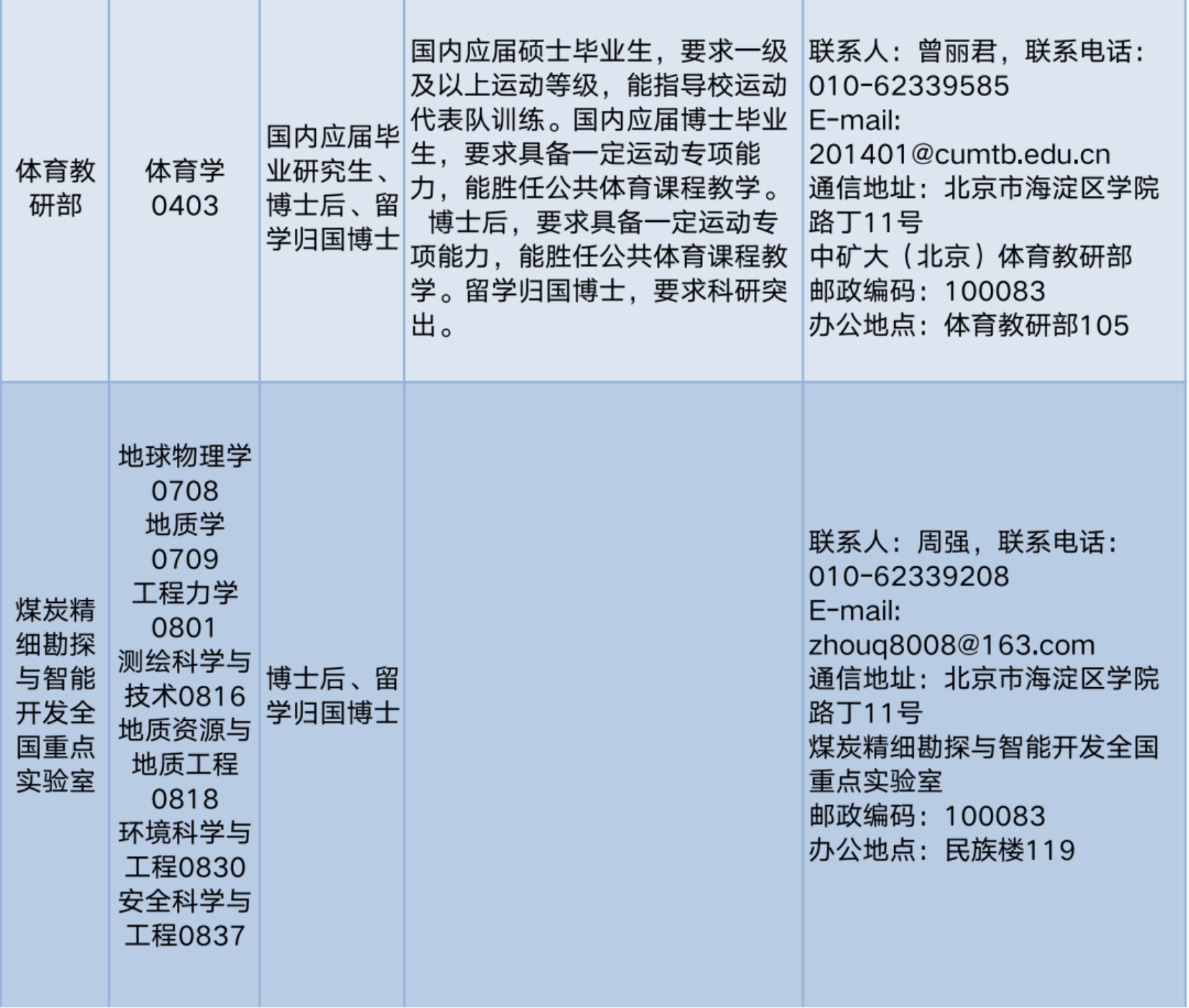 专任教师主要接收矿业工程、安全科学与工程、地质资源与地质工程、土木工程、测绘科学与技术、力学、机械工程、电气工程、信息与通信工程、控制科学与工程、管理科学与工程、环境科学与工程、化学工程与技术、计算机科学与技术、数学、统计学、公共管理、思想政治教育、物理学、体育学等学科的优秀人才。