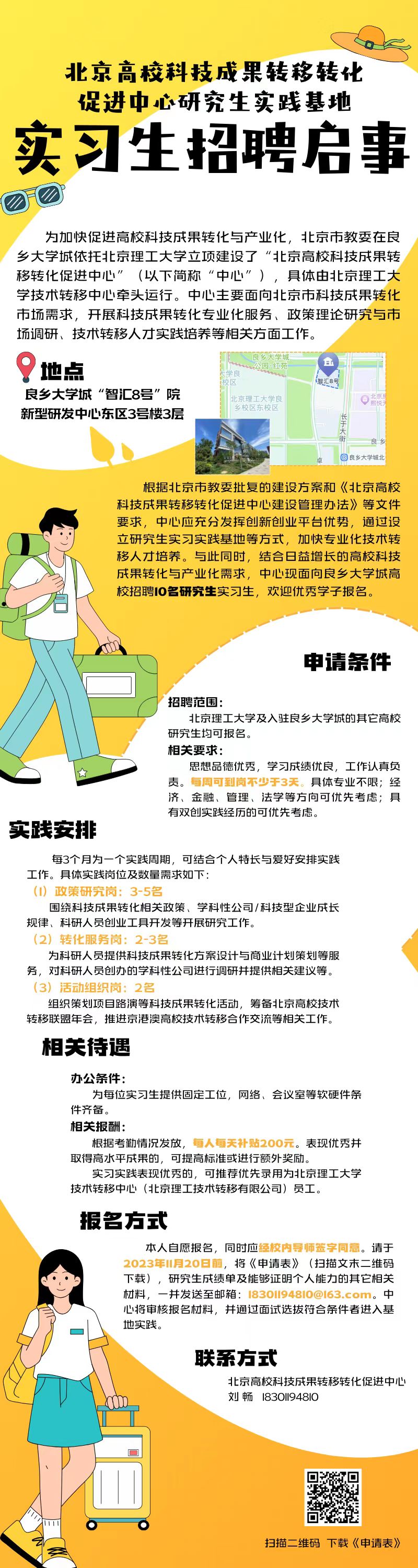 【实习招聘】北京高校科技成果转移转化促进中心研究生实践基地实习生招聘启事
